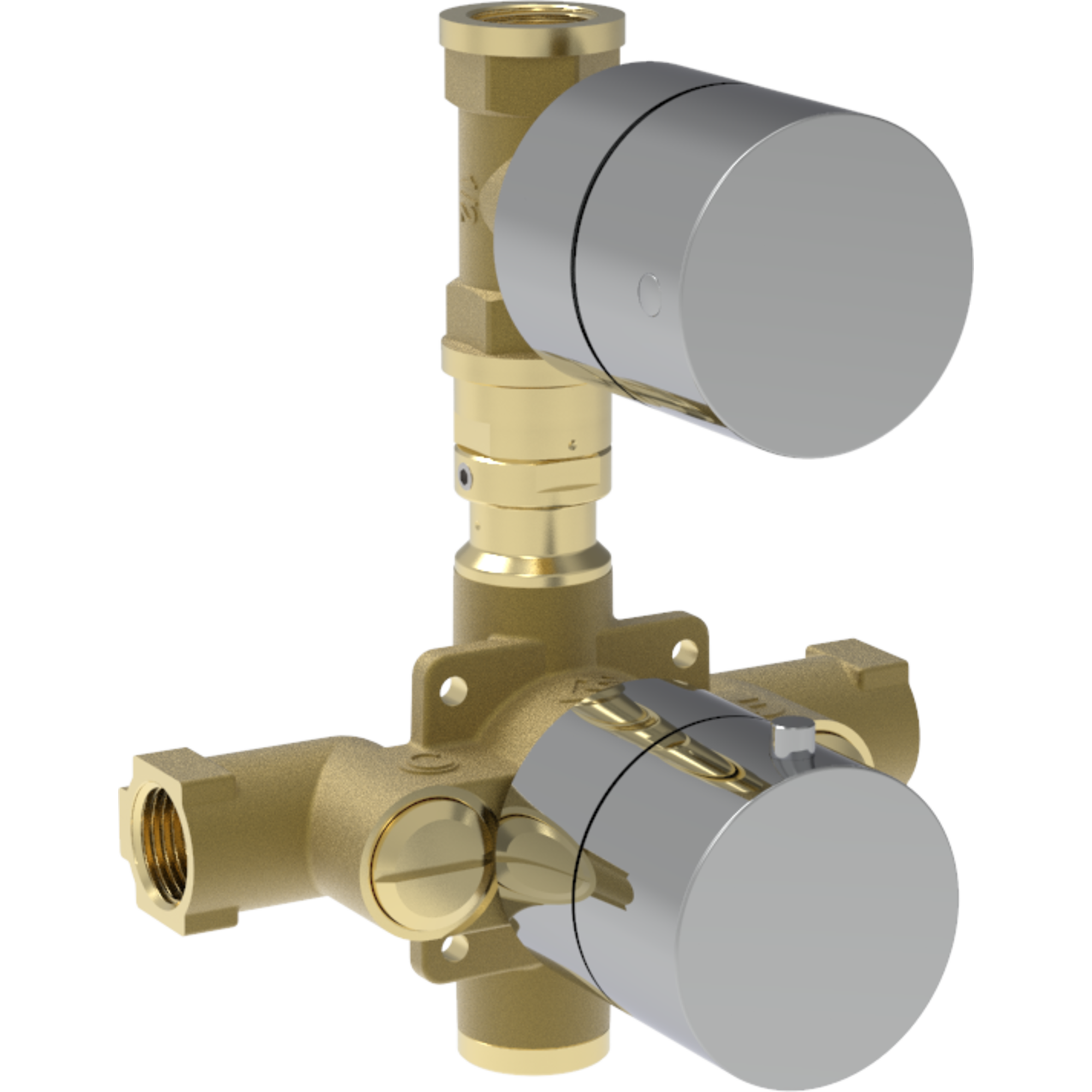 Thermostatic mixer with inspectable non-return valves combined with control valves, chrome lock-nuts and handles