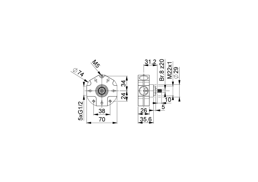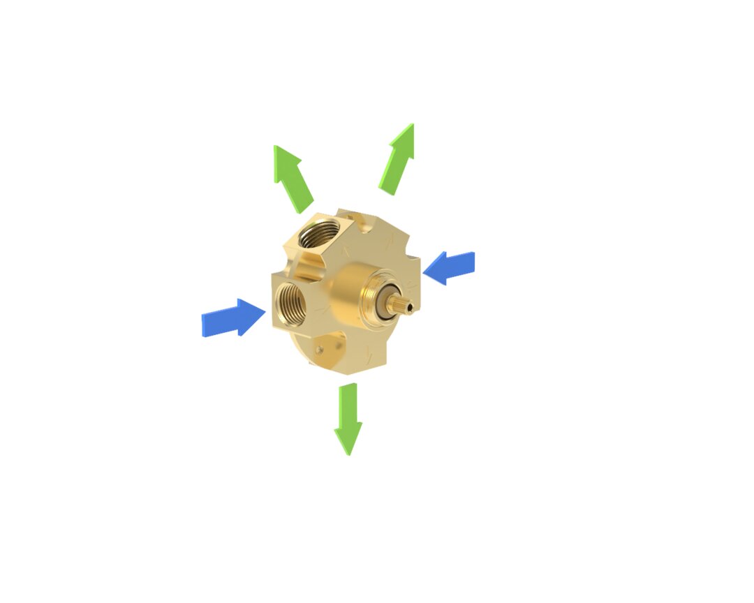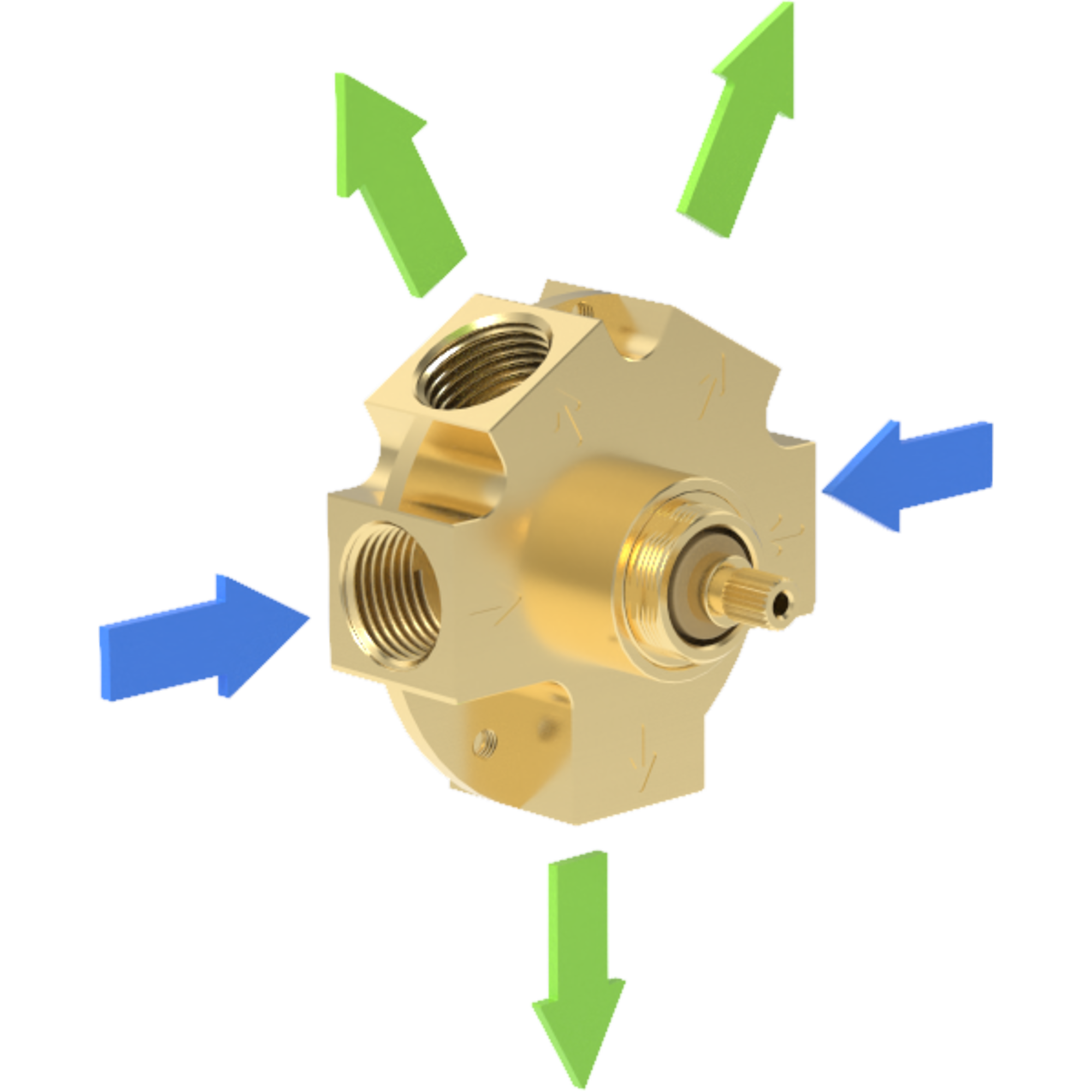 | MIDEV050Ta | CW617N | 2x G 1/2" | 3x G 1/2" | M22x1 | 3 vie / 3 ways | No | 8 z20 | 18,5 l/min | |