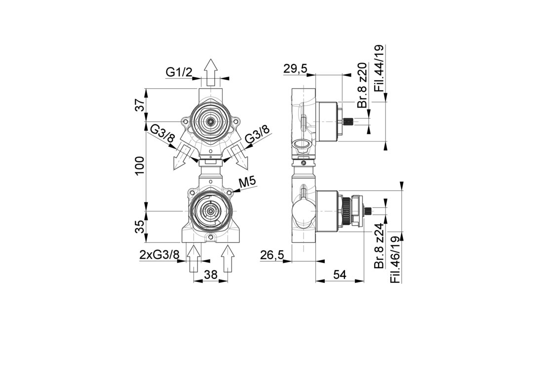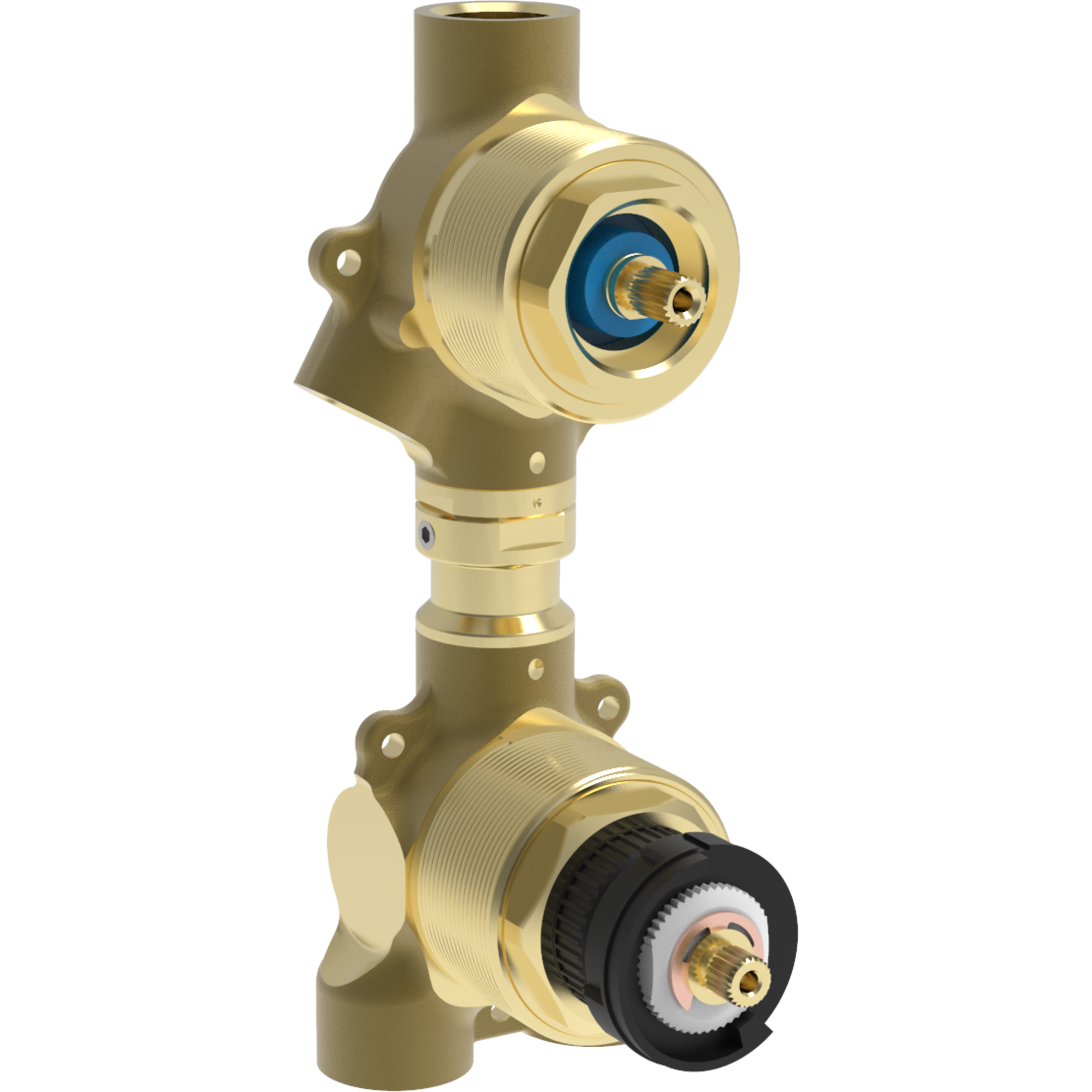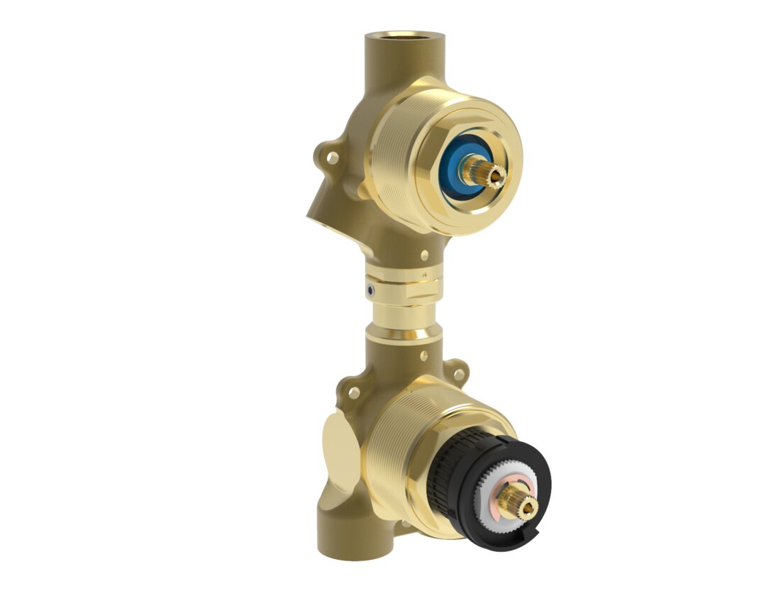 | MITID001Ta0 | CW617N | 2x G 3/8" | 1x G 1/2" + 2x G 3/8" | 100 mm | 3 vie / 3 ways | No |