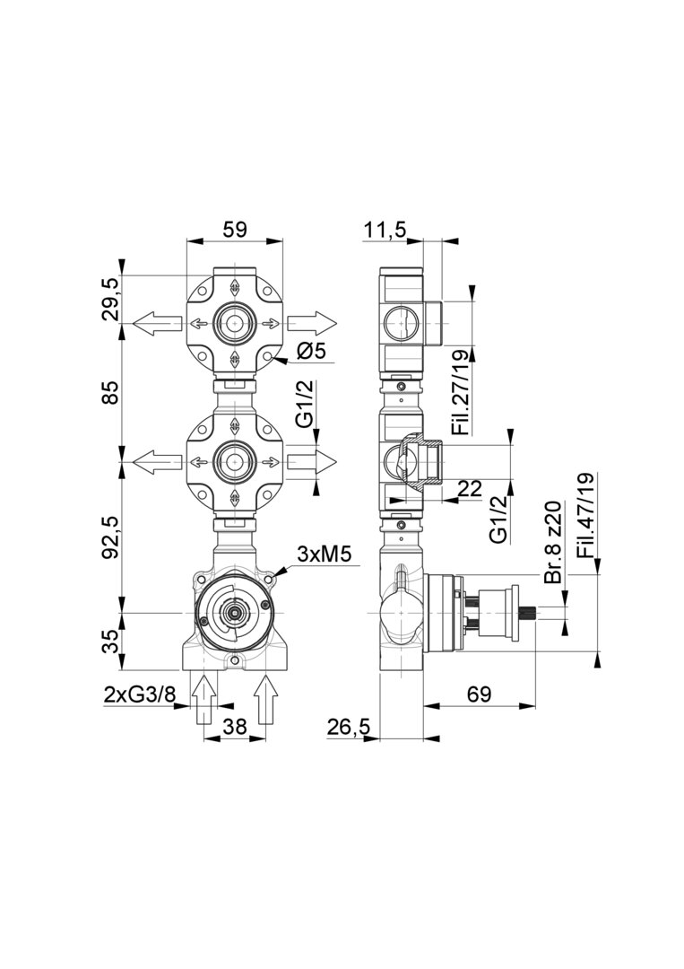 | MITID016Ta1 | CW617N | 2x G 3/8" | 4x G 1/2" | 2x G 1/2" | VT28 | 8 z20 |