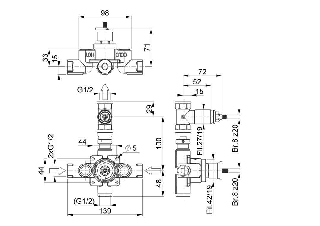 001-19-01A-011 CW617N 2x G 1/2" G 1/2" 100 mm G 1/2" VT28 8 z20