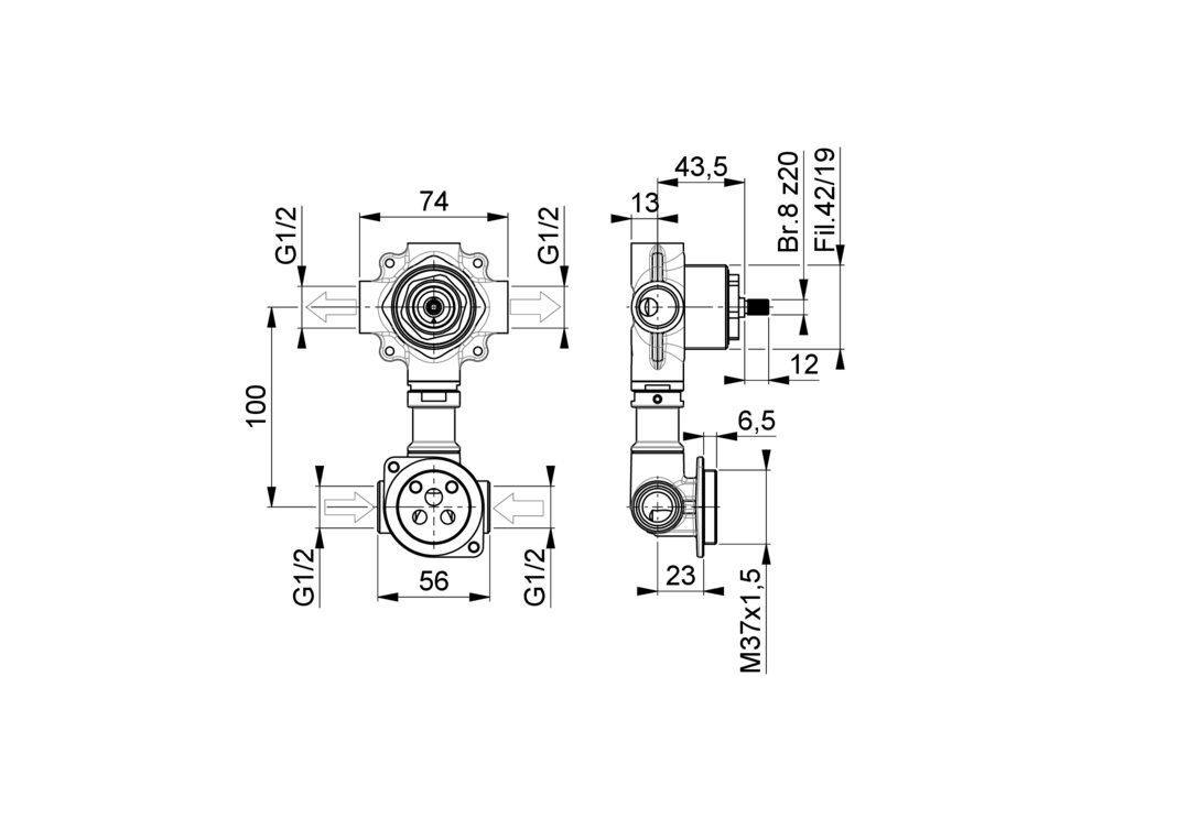 | 001-20-01A-010 | CW617N | 2x G 1/2" | 2x G 1/2" | M37x1,5 | 42/19 | 100 mm | 35 mm | 2 vie / 2 ways | No | |