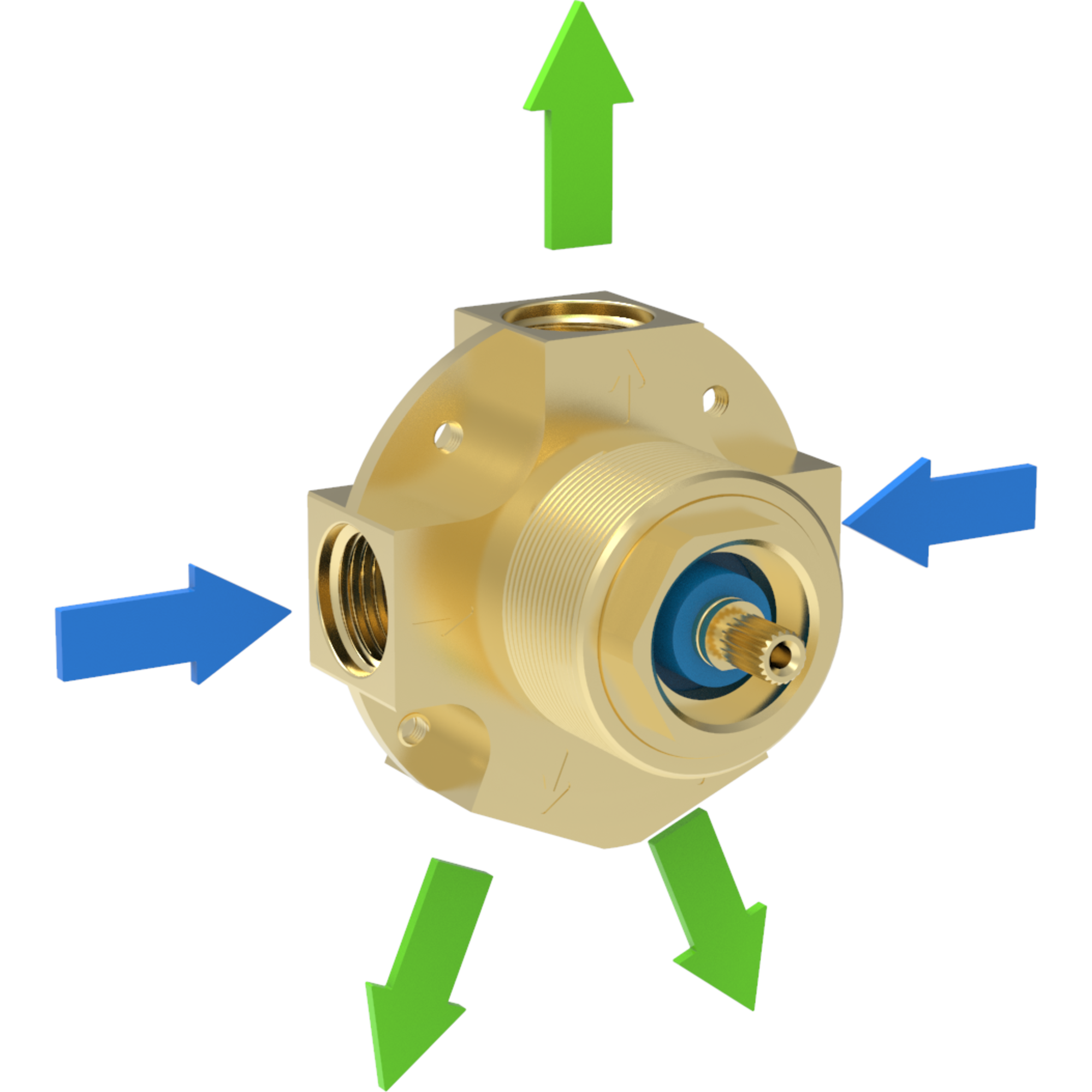 | MIDEV022Ta | CW617N | 2x G 1/2" | 1x G 1/2" + 2x G 3/8" | 3 vie / 3 ways | No | 8 z20 | 39,9 l/min | |