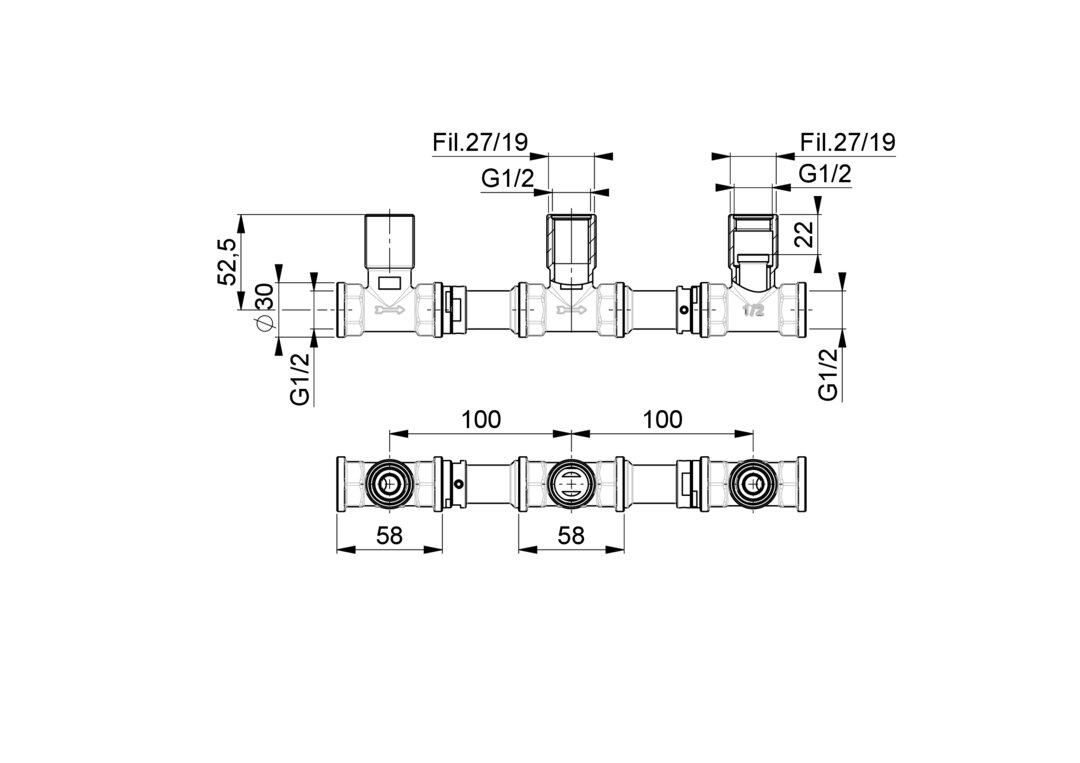 | MIGRU004Ta | CW617N | 2x G 1/2" | G 1/2" | 27/19 | 100 mm | 2x G 1/2" | |