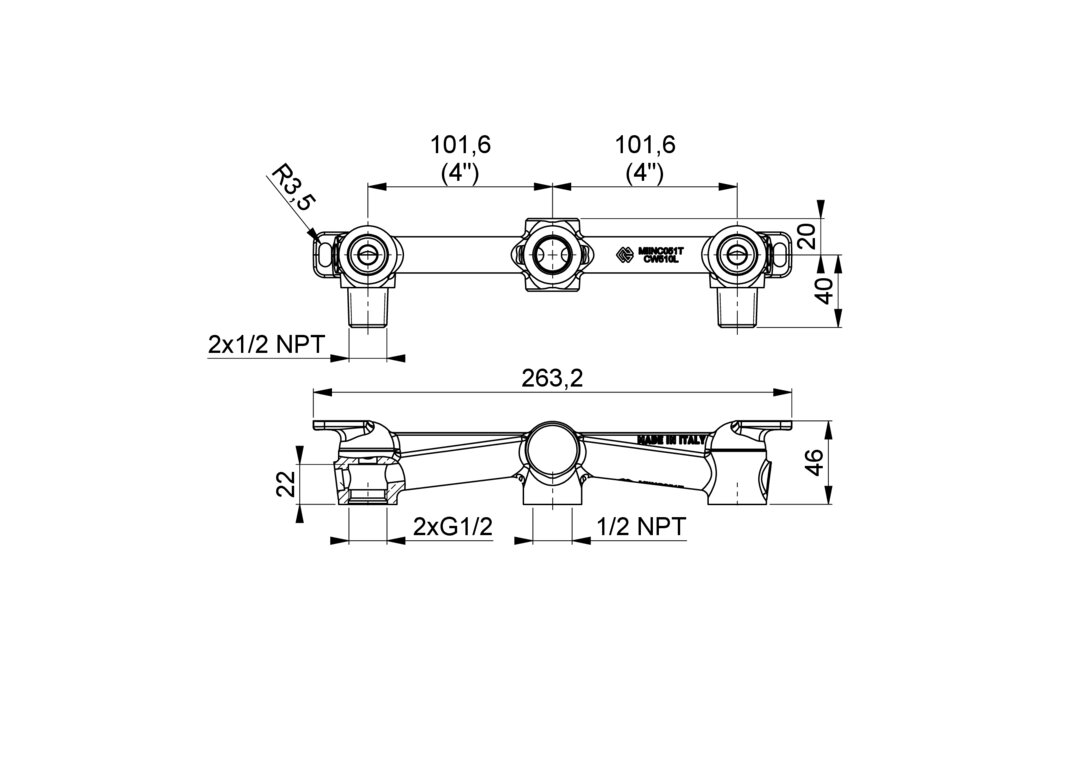 | MIINC051Dm_1c | CW724R | 2x 1/2" NPT | 1/2" NPT | 101,6 mm | 2x G 1/2" |