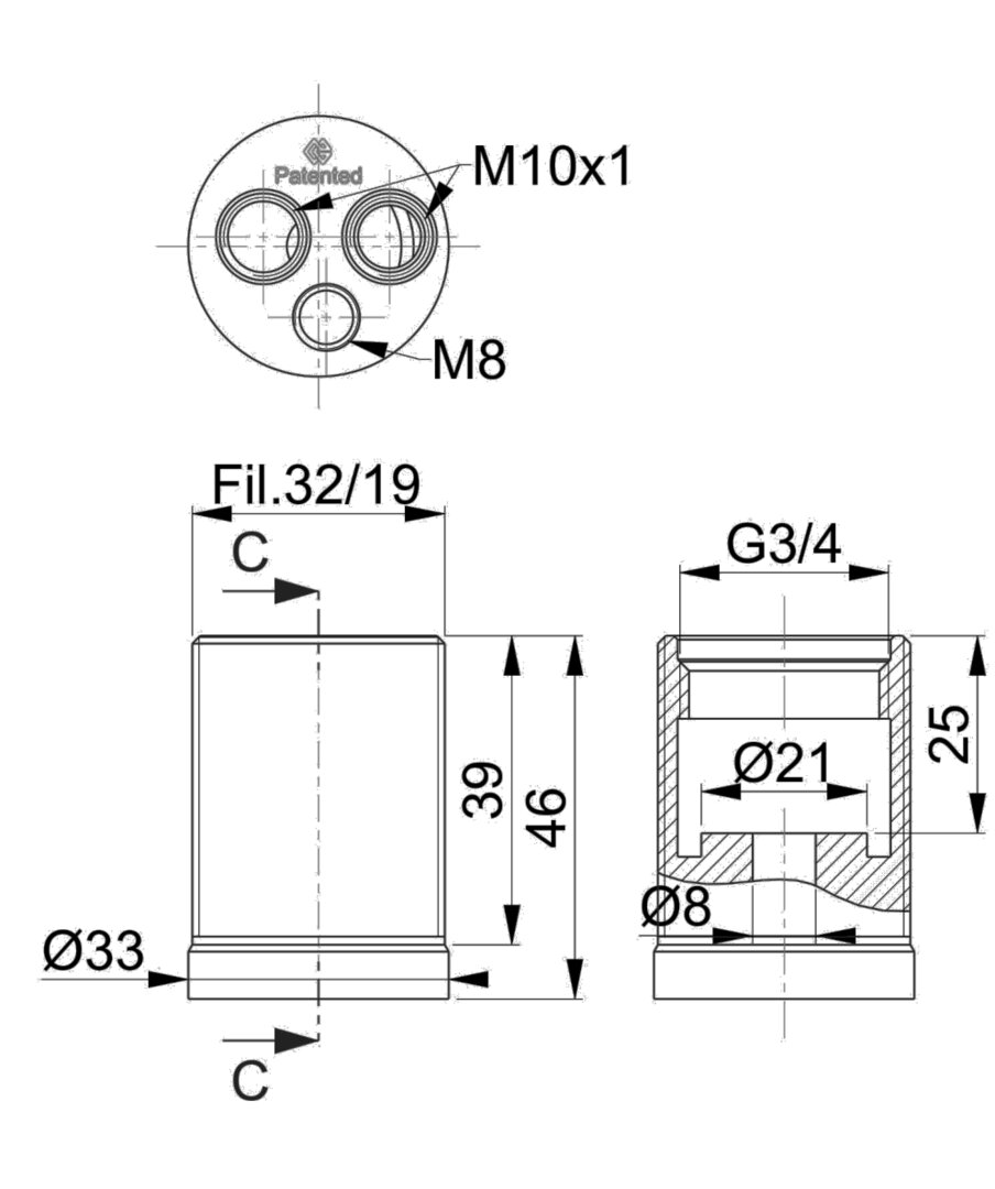 | MIPIA010Tm | CW617N | 32/19 | G 3/4" | ⌀ 33 mm | M10x1 | |