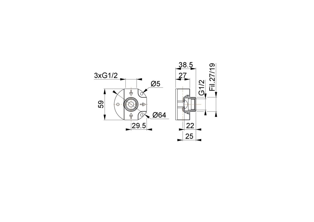 MIRUB017Tm CW617N 2x G 1/2" G 1/2" 27/19 G 1/2"