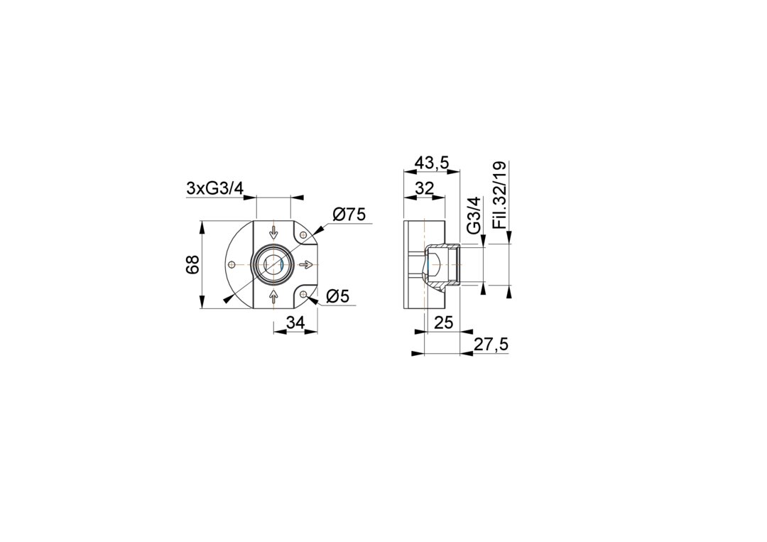 MIRUB020Tm CW617N 2x G 3/4" G 3/4" 32/19 G 3/4"