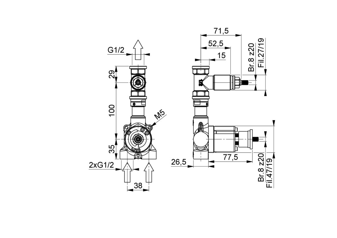 | MITID027Ta0 | CW617N | 2x G 1/2" | G 1/2" | 100 mm | G 1/2" | VT23 | 8 z20 |
